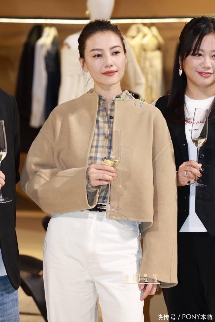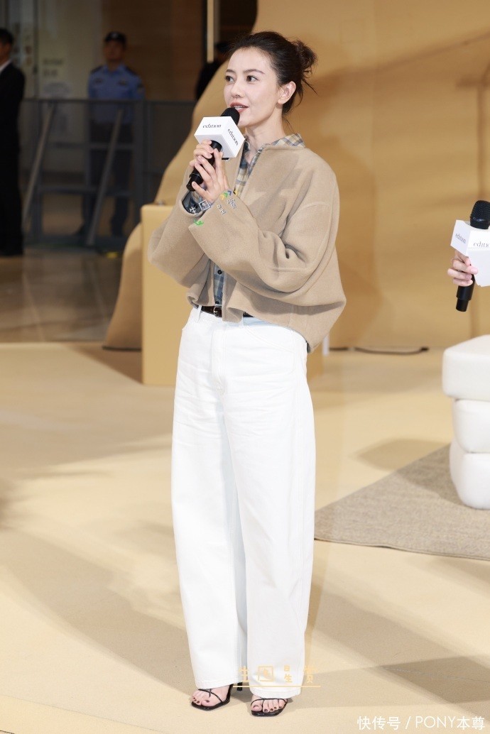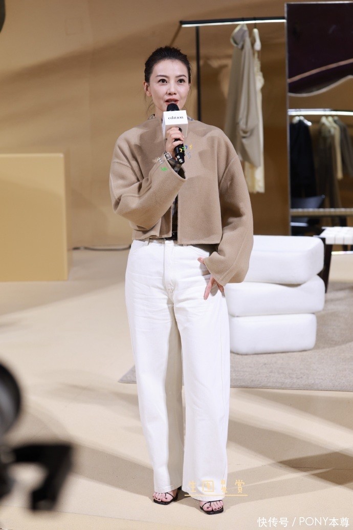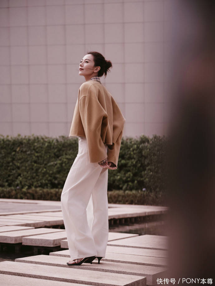 高圆圆为这件浅棕色毛呢短上衣搭配了一条纯白色裤子,“棕 + 白” 的组合堪称秋冬配色的 “黄金搭档”。白色的清爽中和了棕色的厚重,让整体造型在温柔之余多了几分利落,无论是活动场合还是日常通勤,这样的配色都能轻松 hold 住。这种搭配思路对中年女性尤其友好 —— 无需复杂的图案或亮色,仅靠基础色的碰撞,就能穿出不费力的高级感,同时还能通过色彩对比凸显气色,让 45 岁的高圆圆看起来精神饱满,丝毫不见疲态。